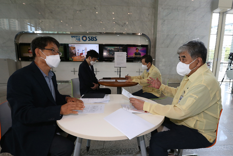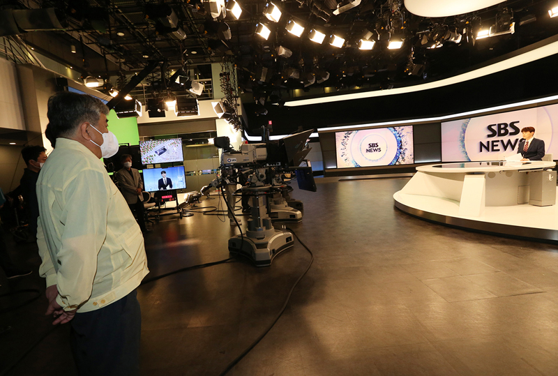 On July 18, Korea Communications Commission Chairman Han Sang-hyuk visited the SBS office in Mokdong, Seoul to inspect whether Covid-19 quarantine measures were being followed on broadcasting production sites after social distancing rules were raised to Level 4.